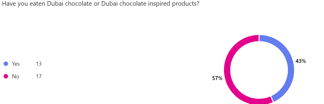 Like Labubus, this popularity can be among students as well, with just over 40% of respondents from the previously mentioned survey stating they have tried Dubai chocolate or some product inspired by it: